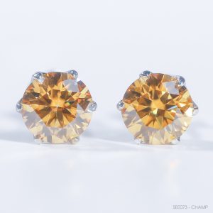 Bông tai 6 chấu chốt ren ổ 6.3mm Bạc S925 xi kim Chủ Mois Round Champange không tấm SEE073