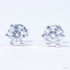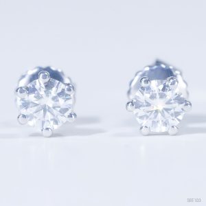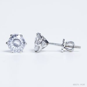 Bông tai 6 chấu chốt ren ổ 5,0mm Bạc S925 xi kim Chủ Mois Round D không tấm see104.s1.m1.k