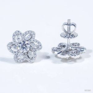 Bông tai 6 chấu chốt ren ổ 5,0mm Bạc S925 xi kim Chủ Mois Round D không tấm see104.s1.m2.k