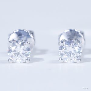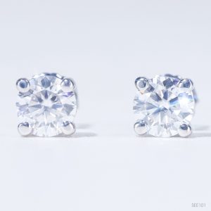 Bông tai 6 chấu chốt ren ổ 4,0mm Bạc S925 xi kim Chủ Mois Round D không tấm SEE103