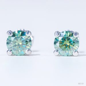 Bông tai 4 chấu chốt ren ổ 5,0mm Bạc S925 xi kim Chủ Mois Round Green không tấm see101.s1.m2.k