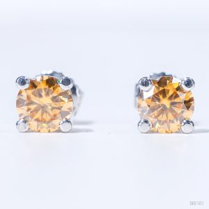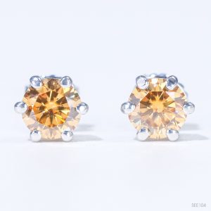 Bông tai 6 chấu chốt ren ổ 5,0mm Bạc S925 xi kim Chủ Mois Round Champange không tấm see104.s1.m3.k