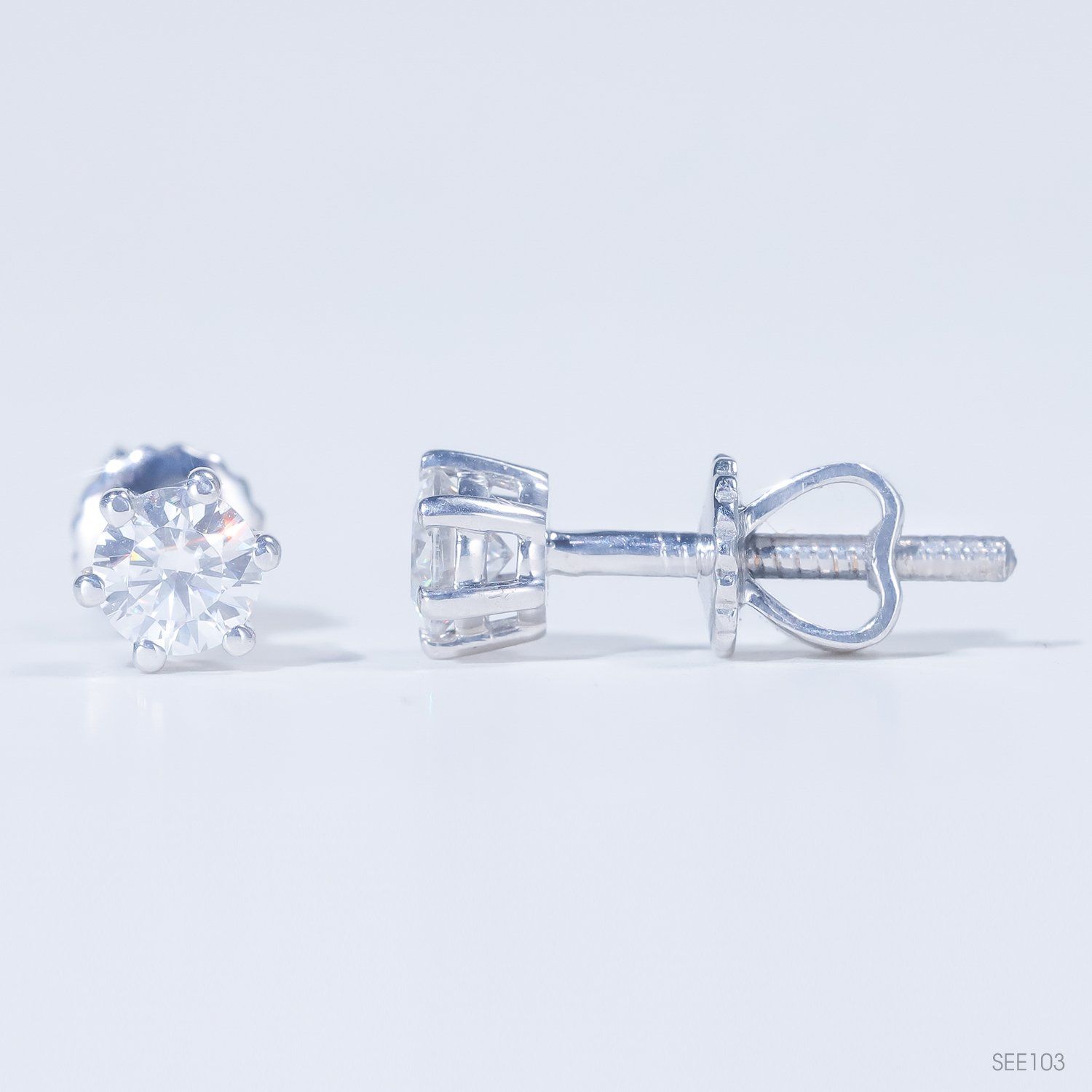 Bông tai 6 chấu chốt ren ổ 4,0mm Bạc S925 xi kim Chủ Mois Round D không tấm SEE103