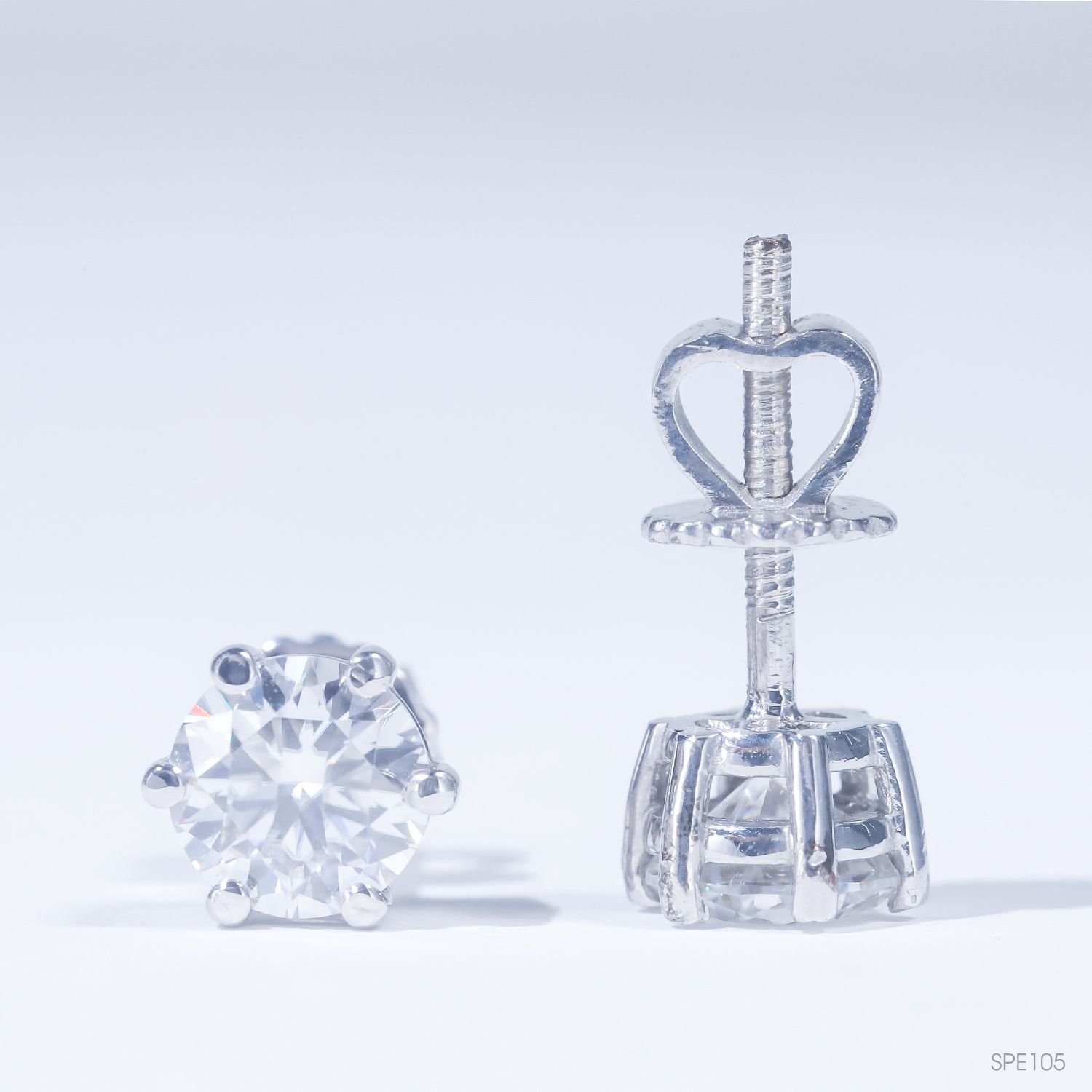 Bông tai 6 chấu chốt ren ổ 6,0mm Bạc S925 xi kim Chủ Mois Round không tấm SEE105