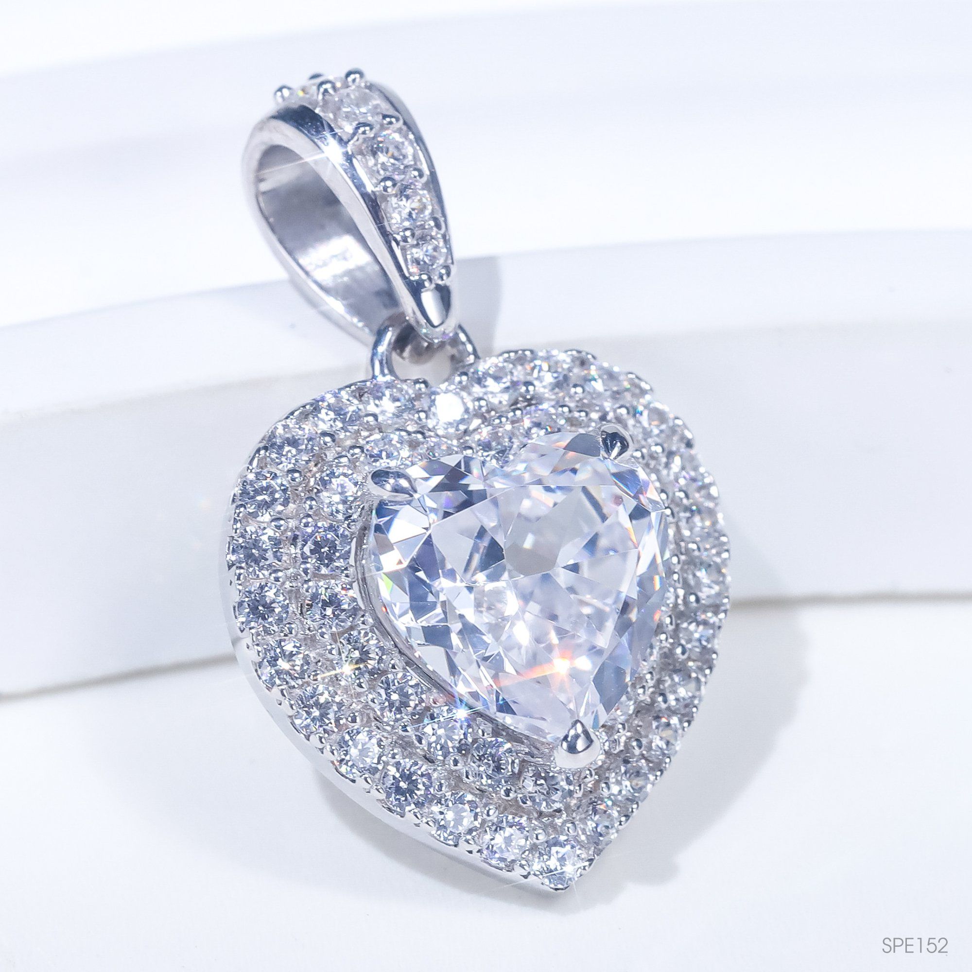 Hãy là người đầu tiên nhận xét “Mặt dây Double halo ổ heart 9mm Bạc S925 xi kim Chủ Nam phi Heart D tấm cz SPE152” Hủy