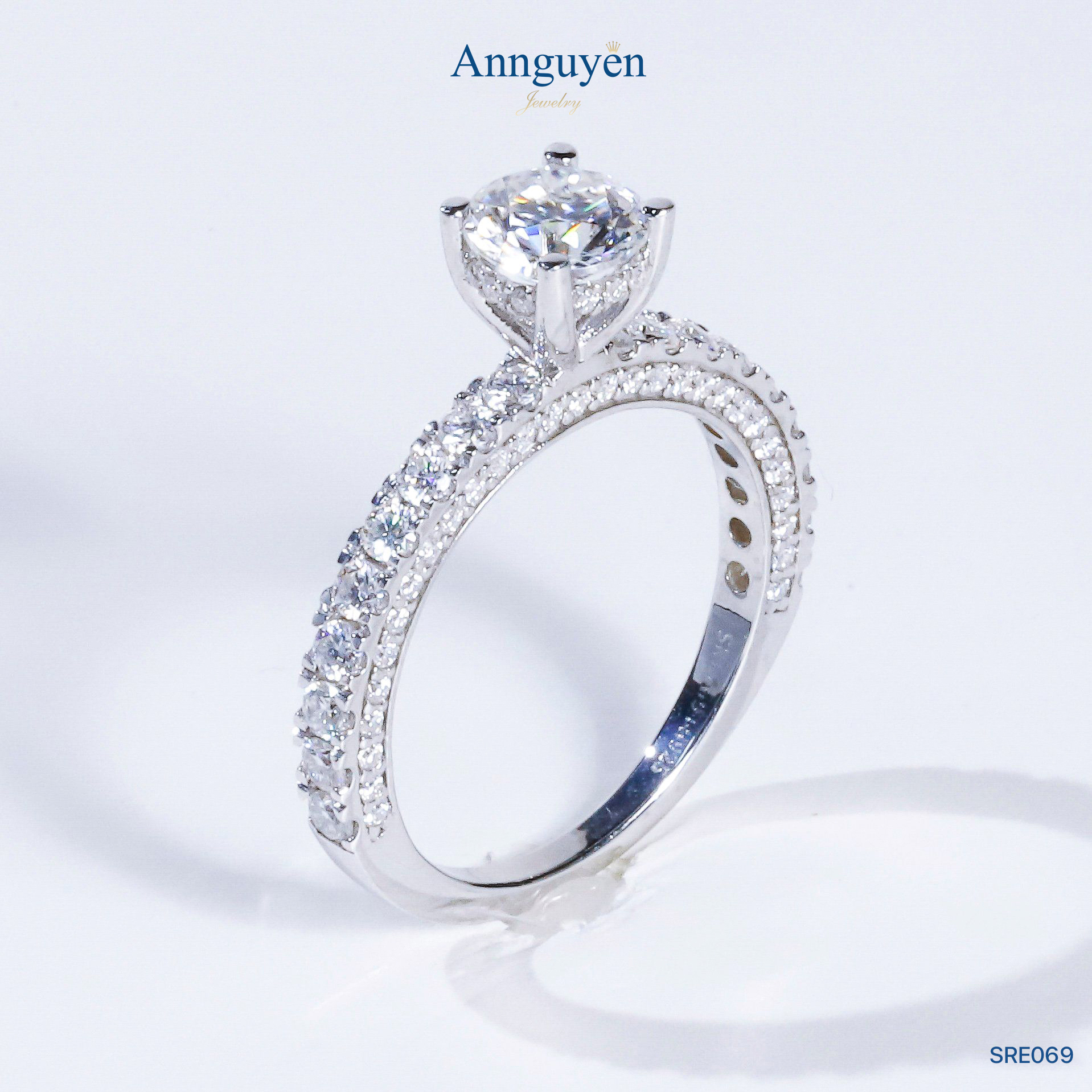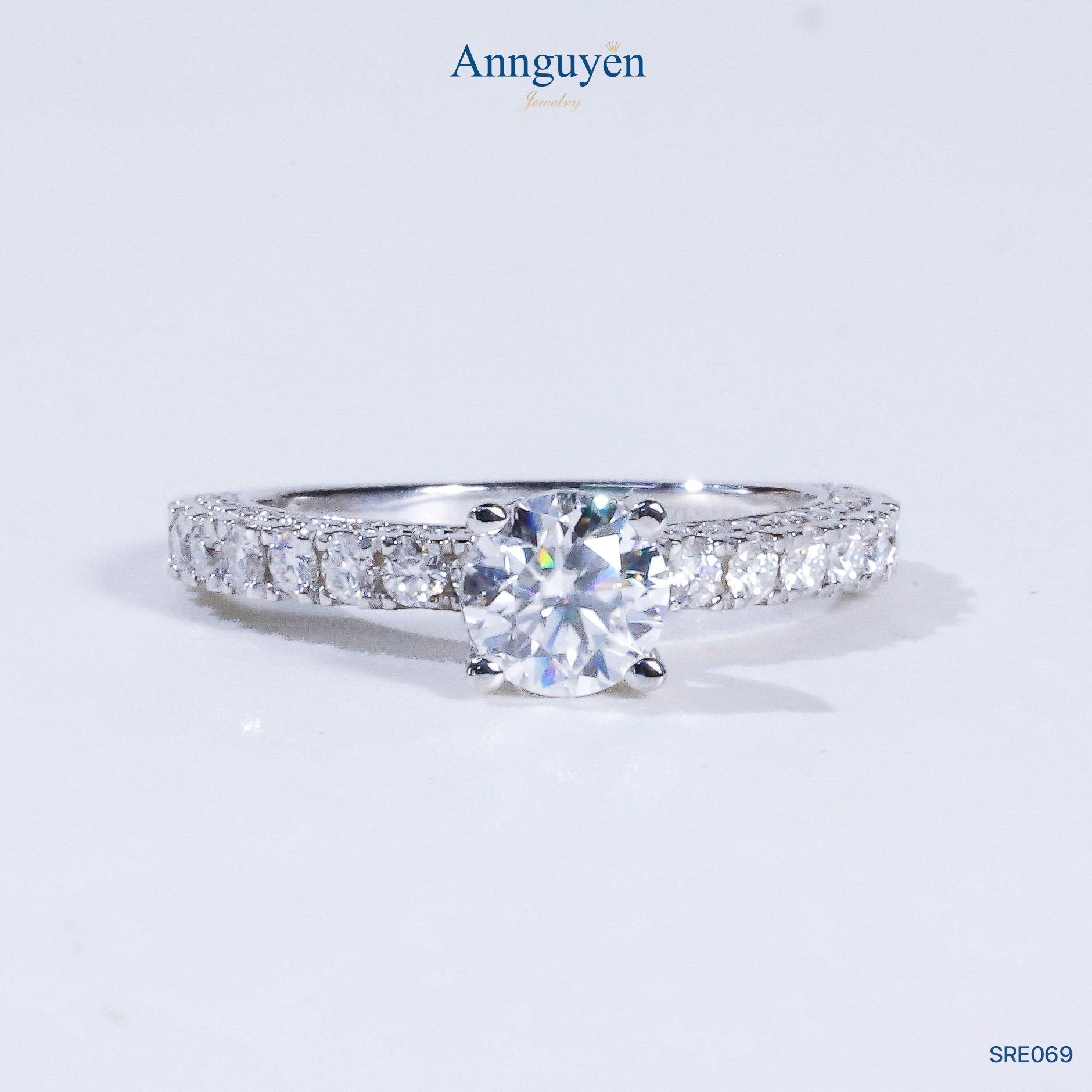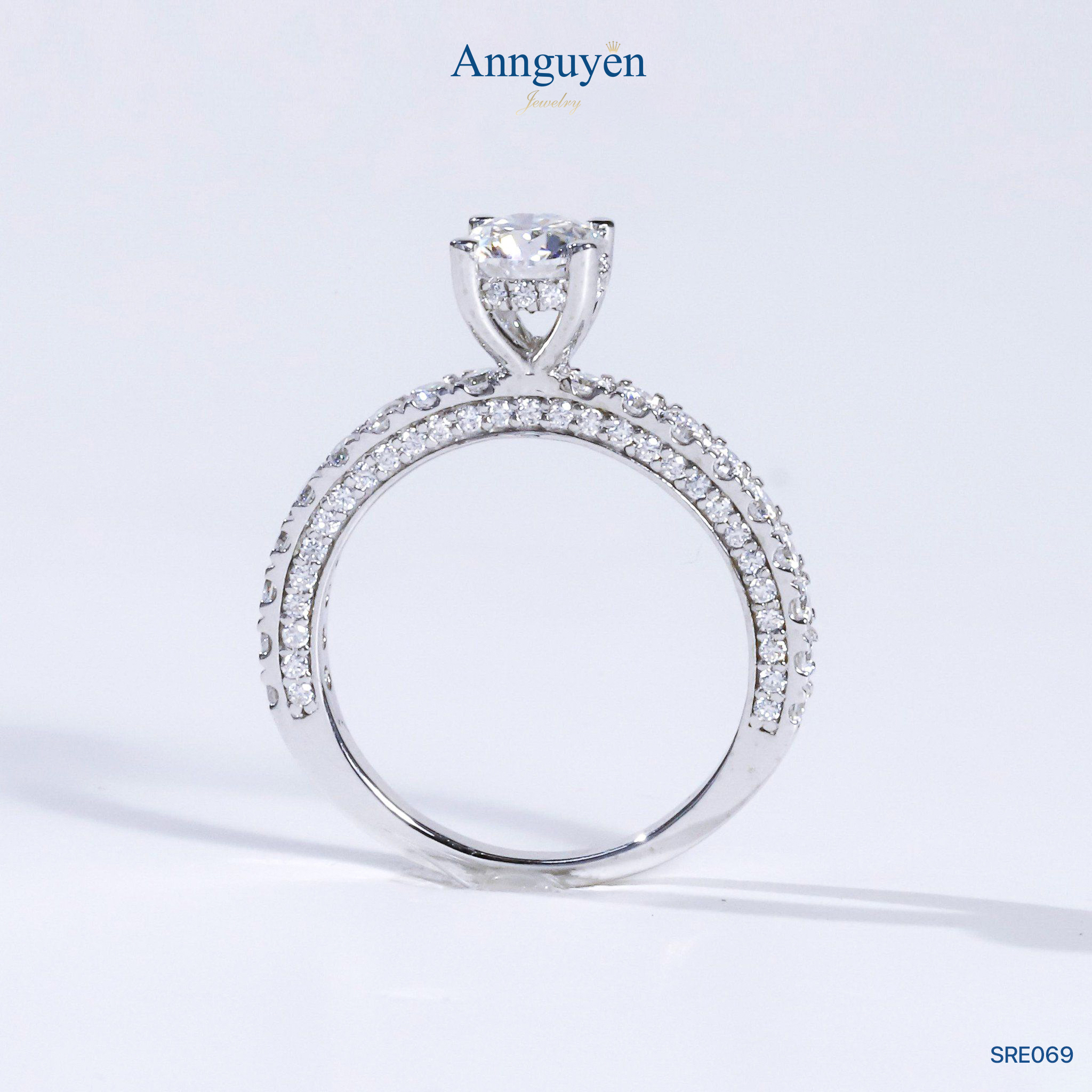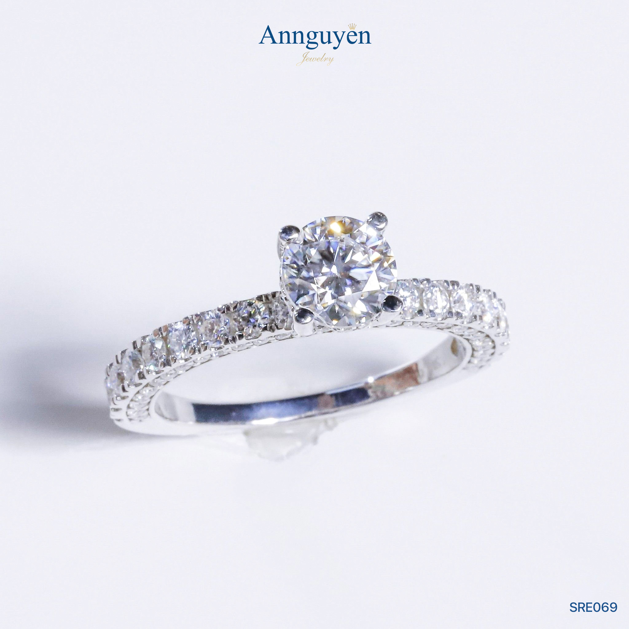 Nhẫn nữ Moissanite 6,3mm – Bạc S925 Xi Bạch Kim – Annguyen Jewelry (SRE069)