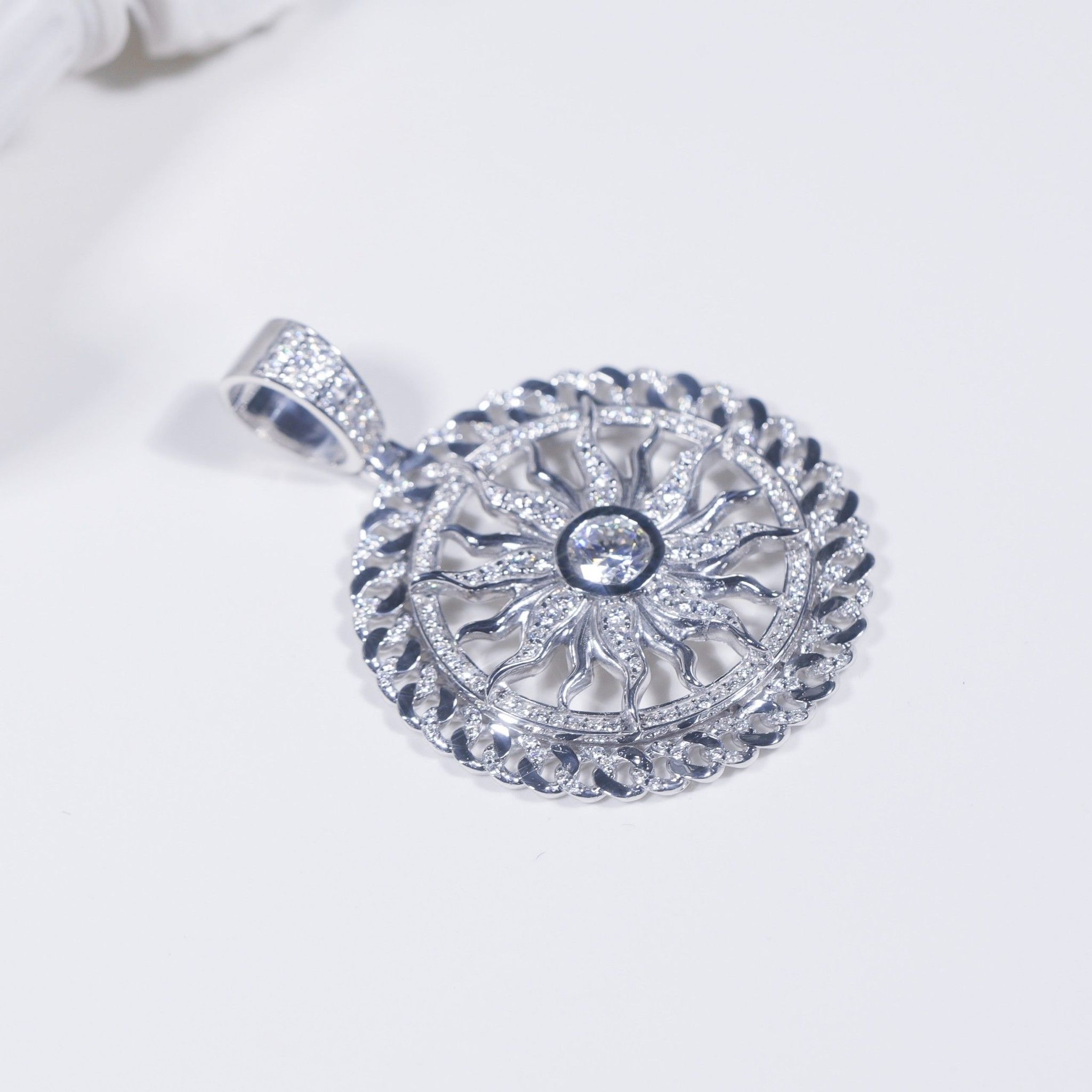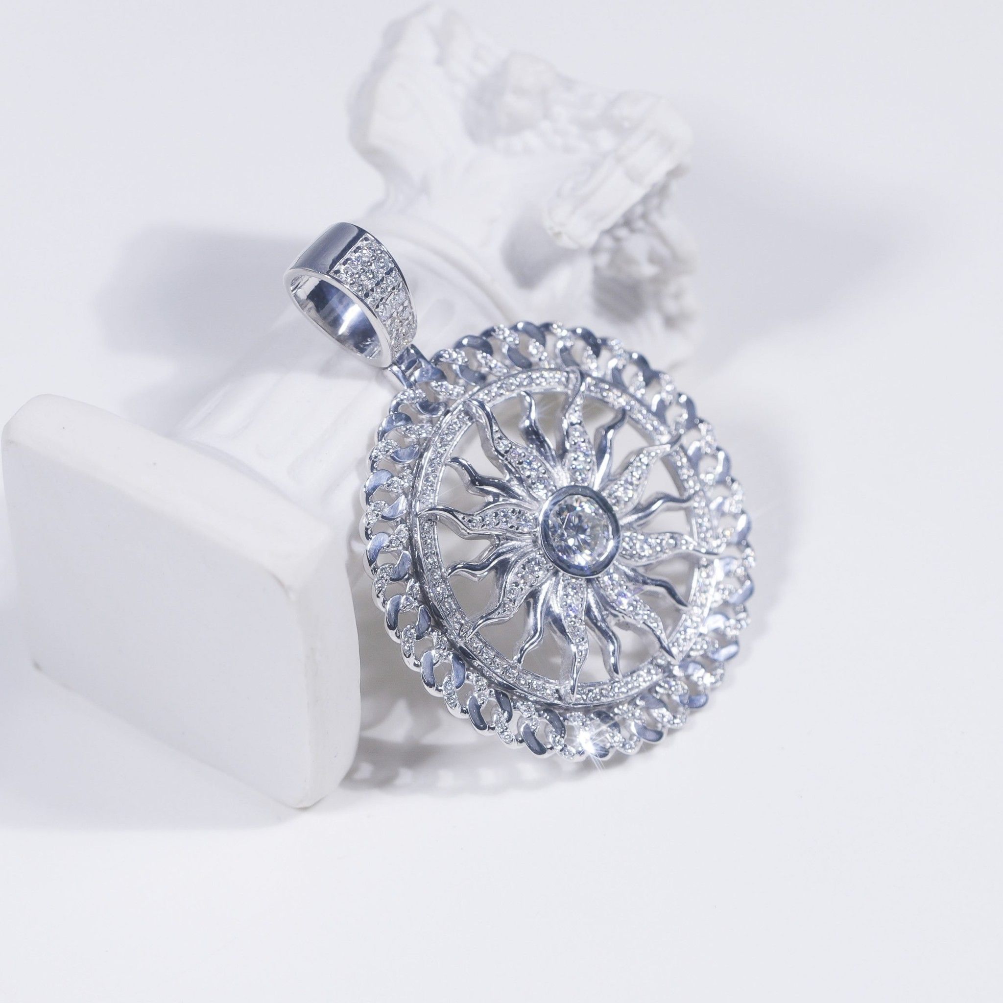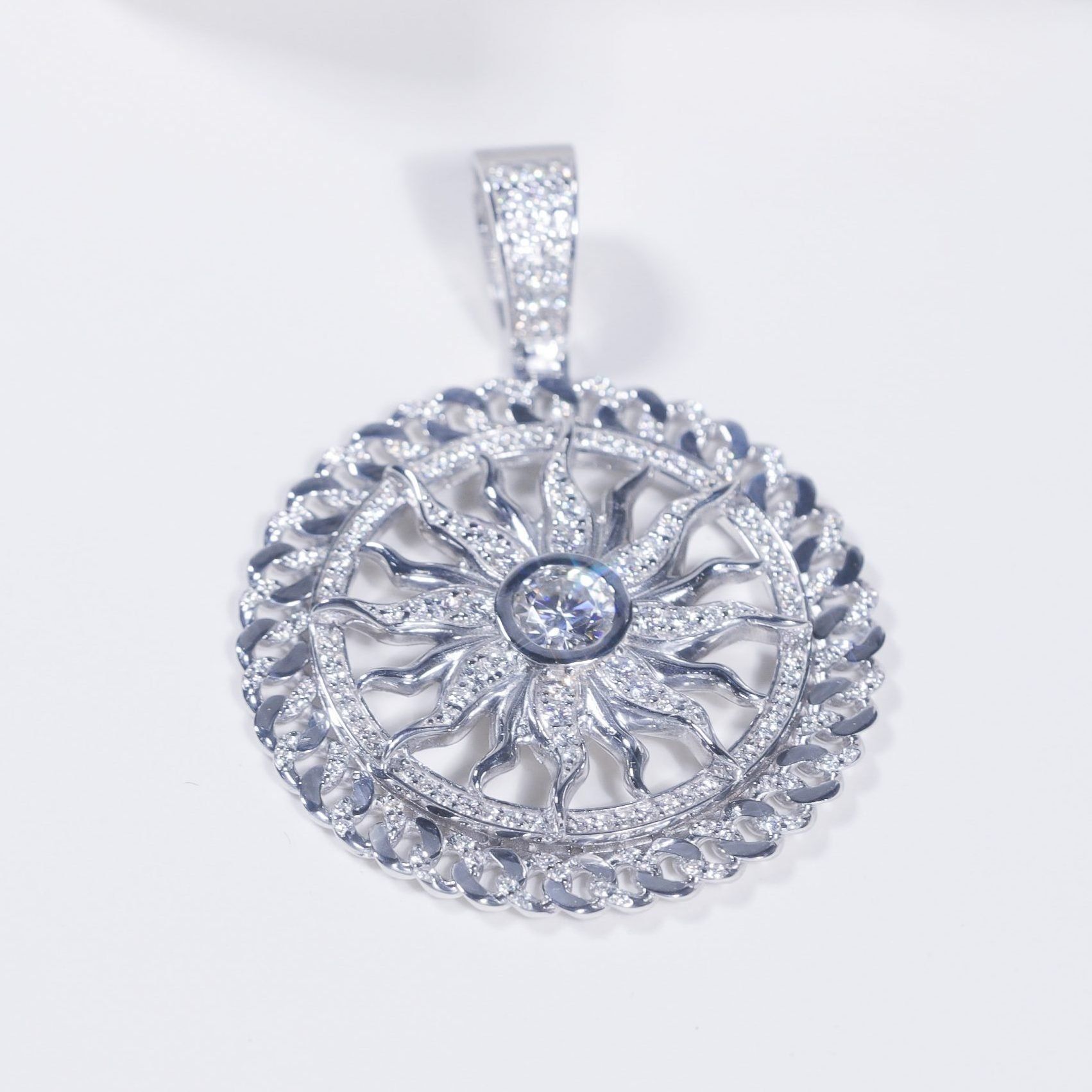 S925 Mặt dây The Sun khung cuban Ổ 6,5mm không chủ tấm mois SPE103.N.m