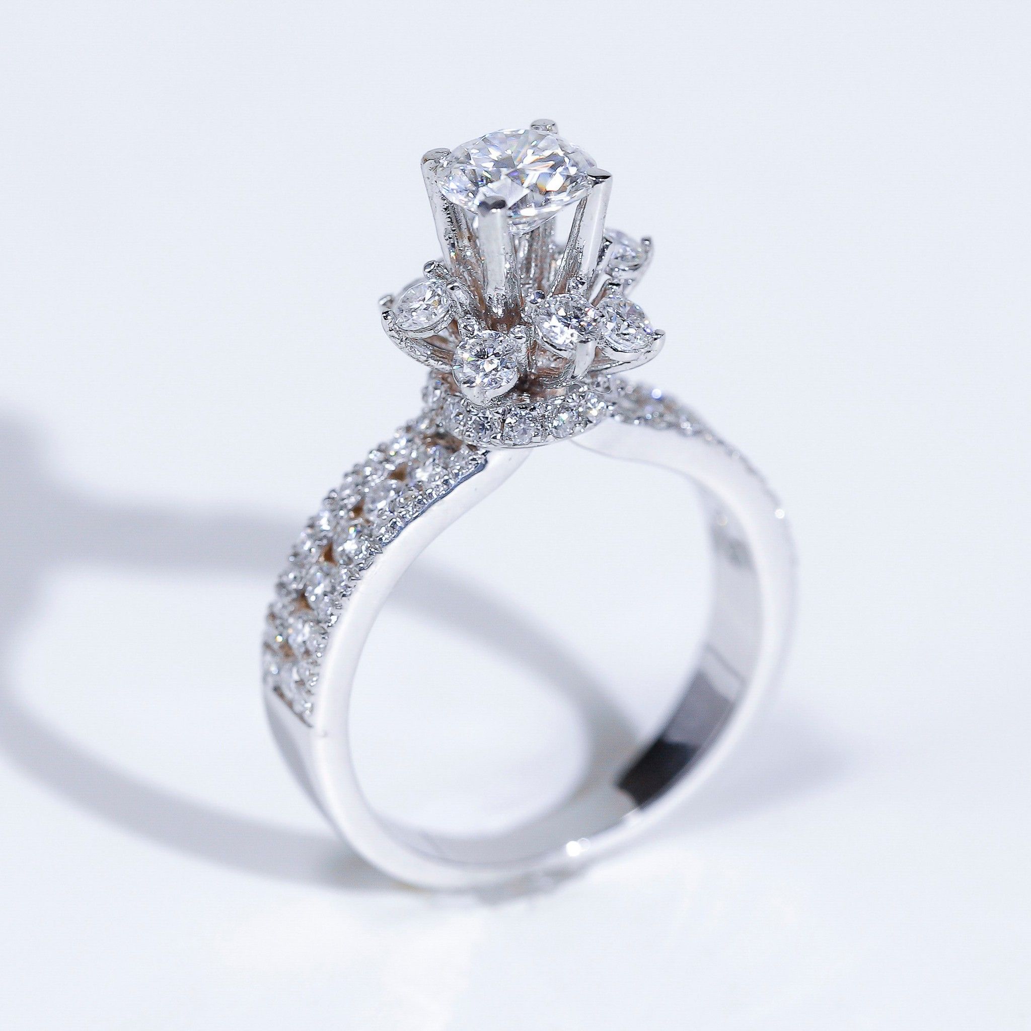 - Đá chủ: Moissanite 5.4 mm độ sáng 9.25/10 gần như kim cương
