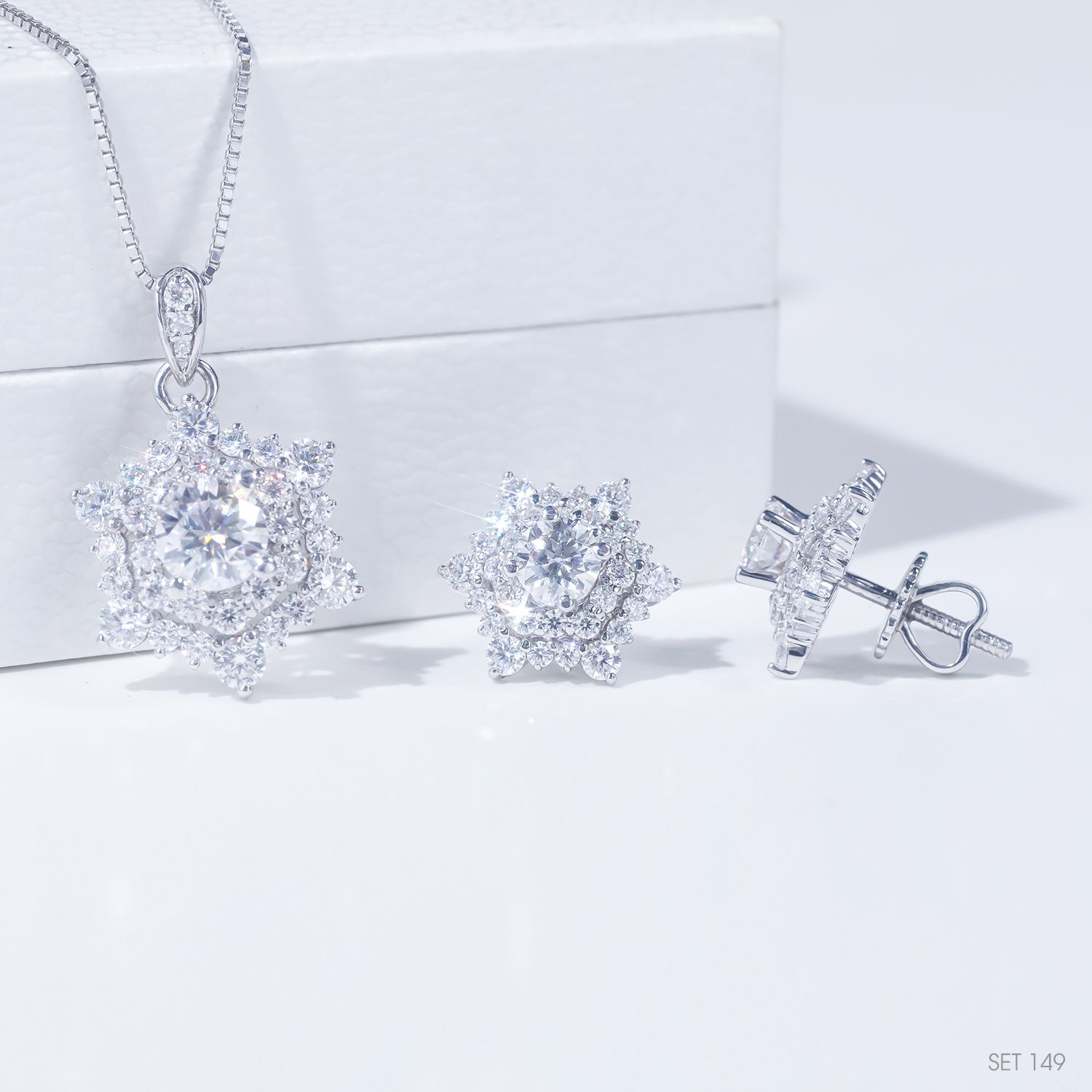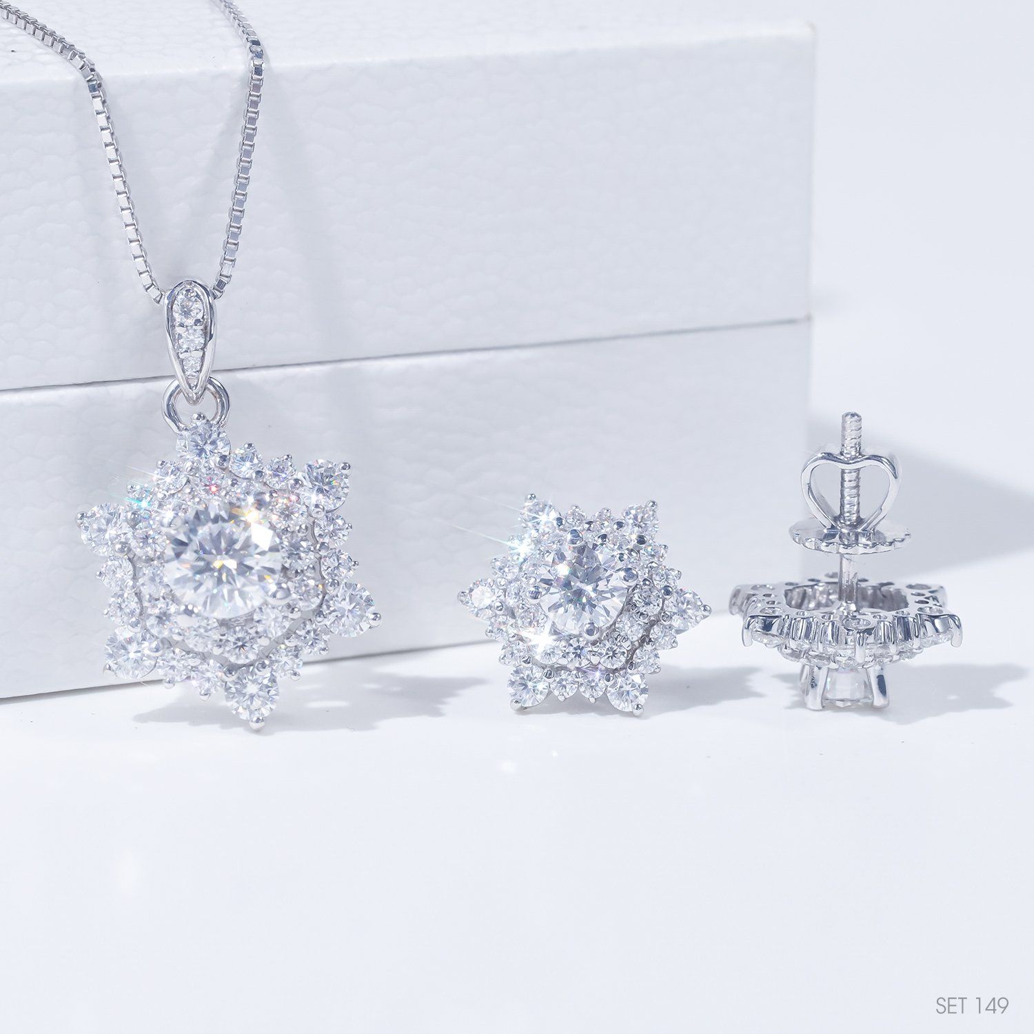 - Mặt dây Bông tuyết ổ 6.3mm Bạc S925 xi kim Chủ Mois Round D tấm mois SPE149