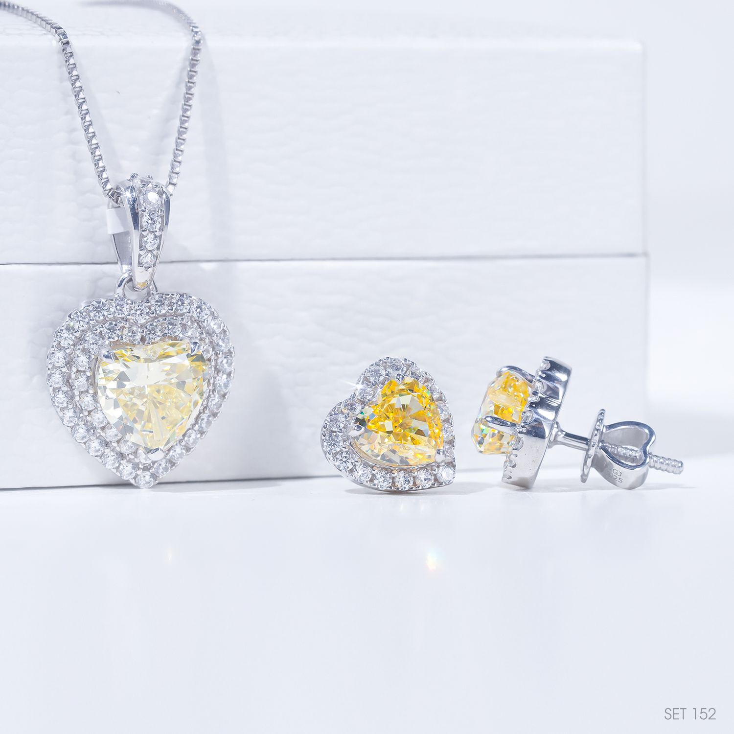 - Mặt dây Double halo ổ heart 9mm Bạc S925 xi kim Chủ Nam phi Heart Light Yellow tấm cz SPE152